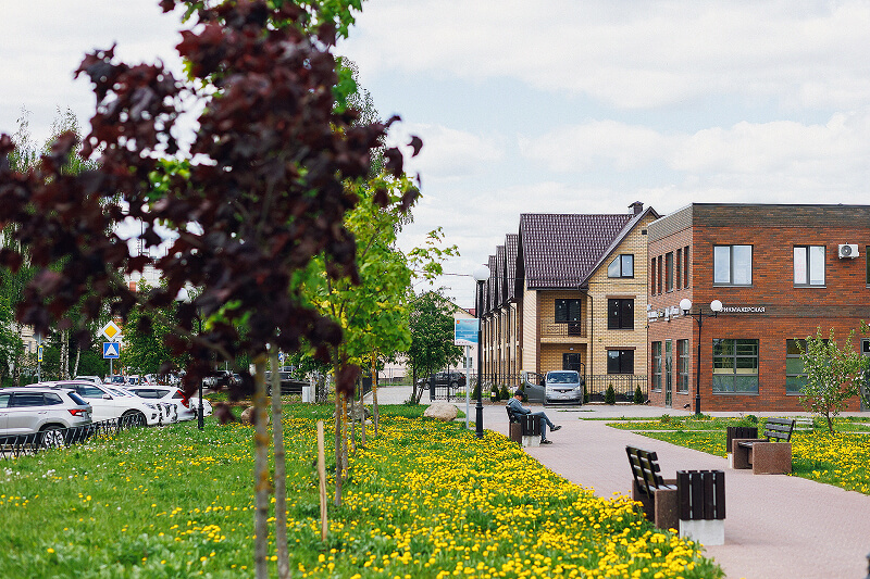 Рядом с комплексом находится всё, что нужно для комфортной жизни: школа, два детских сада, поликлиника, продуктовые магазины, остановки общественного транспорта, бассейн, фитнес-зал и салон красоты. Для прогулок и отдыха жителей — аллея Славы с детской и спортивной площадками